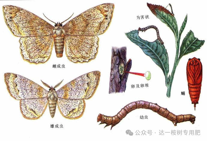 达一农林 尺蠖之屈,以求信也。 害虫界“哲学家” 植物知识小课堂 尺蠖因为幼虫时行走的动态,被赋予了不少哲学意义,如《易经》里说“尺蠖之屈,以求信也;龙蛇之,以存身也”,席慕蓉诗“死,也许不等于生命的终结,也许只是如尺,从这一页到另一页的迁移”。但现实中,尺蠖是实打实的害虫,有百害而无一利! 👆尺蠖幼虫 油桐尺蠖 尺蠖是鳞翅目尺蛾科所有大型蛾类的幼虫,目前已知约有12000种,遍布世界。我国约有其中的43种。同时,尺蠖是一种及善伪装的昆虫。 油桐尺蠖,是一种食叶性害虫,幼虫食性较广,主要危害油桐等经济林。 随着速生桉大面积纯林的出现,油桐尺蠖在一些地区已成为速生桉主要害虫,可在短期内将大片速生桉树叶吃光,形似火烧,严重影响树势生长。油桐尺蛾在中国海南、福建、广西、广东等省区有广泛分布,一般1 年发生2 - 4代,而且普遍存在虫龄重叠现象。完成一个世代需要经过成虫、卵、幼虫和蛹4个阶段。 危害树叶 1 ~ 2 龄幼虫喜食桉树嫩叶面,3 龄时将叶缘蚕食缺口,4 龄后食量剧增,被害叶往往只留下主脉,严重时全株成为秃枝,5 龄老熟幼虫吐丝下垂或沿树干下爬到地面草丛间,进入树根附近半径 30 cm 土壤内化蛹,并完成蛹期。 防治方法 物理防治 1、深翻灭蛹。 2、在发生严重的果园于各代蛹期进行人工挖蛹。 3、根据成虫多栖息于高大树木或建筑物上及受惊后有落地假死习性,在各代成虫期于清晨进行人工扑打,也是防治该尺蠖的重要措施; 4、于成虫发生盛期每晚点灯诱杀成虫。 5、卵多集中产在高大树木的树皮缝隙间,可在成虫盛发期后,人工刮除卵块。 6、幼虫化蛹前,在树干周围铺设薄膜,上铺湿润的松土,引诱幼虫化蛹,加以杀灭。 化学防治 1、掌握在孵化盛末期对橘园附近高大树木及树丛喷洒20%氰戊菊酯乳油1500倍液或52.25%农地乐乳油1500~2000倍液。 2、在3龄幼虫盛发前施药肪治,可选用下列任一药剂:90%敌百虫晶体1000倍稀释液、50%杀螟硫磷乳油500倍稀释液、20%克螨虫乳油1000倍稀释液。 生物防治 施用油桐尺蠖核型多角体病毒,每K㎡用多角体2500亿,兑水140L,于第一代幼虫1~2龄高峰期喷雾(相当于1.4×10多角体/ml),当代幼虫死亡率80%,持效3年以上。 【免责声明】:本平台发布及转载文章仅作同行交流学习,部分数据来源于网络,未经证实,并非商业用途,也并非针对具体单位和个人,请勿对号入座,部分内容及图片来源于网络,版权归原作者所有,若未能找到作者及原始出处还望谅解。如有版权疑问,请联系本微信后台,我们会第一时间及时进行删除处理,谢谢。 |
