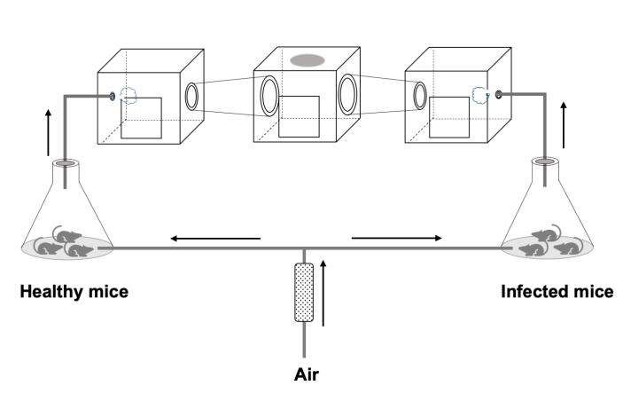 在这项研究中,程功教授团队先是设立了三笼嗅觉测定装置,将小鼠作为感染宿主,酷爱人血的埃及伊蚊作为感染媒介,以对照实验。结果发现,蚊媒病毒感染小鼠可大量释放一种挥发性小分子——苯乙酮(Acetophenone),可有效激活蚊子的嗅觉神经系统,以影响蚊虫的嗅觉感知。