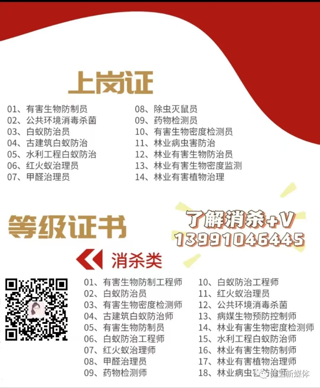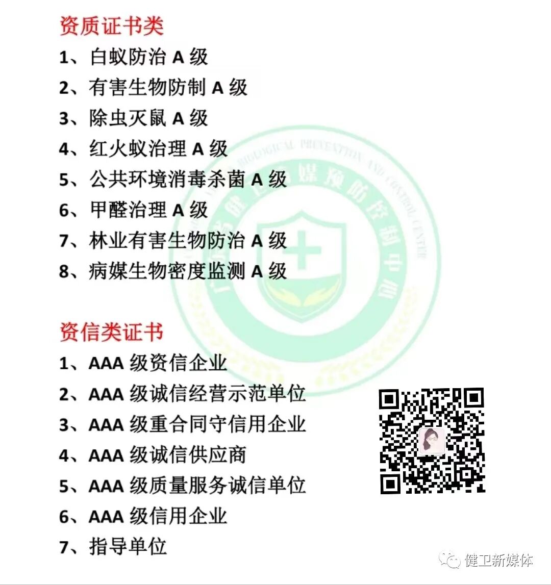 有害生物防制A级资质 《健卫新媒体》主 管:健卫新媒体(深圳)集团有限公司 主 办:健卫新媒体融媒体中心 编委会 主编:刘飞 副主编:党佳燕 编委:罗纯 袁云坤 杨芬 刘飞 党佳燕 唐声烨 汪伟华 李悦兰 刘金花 投稿微信:JWTV2022(原创作品授权,涉及版权请联系平台)未经允许音频禁止下载违者必究平台部分图片来自网络,如有侵权告知删除 部分资料素材来源:网络侵删 了解更多消杀行业资讯、办理消杀资质人员证、增项消杀业务请扫描二维码资讯 关注我获得 更多精彩 |