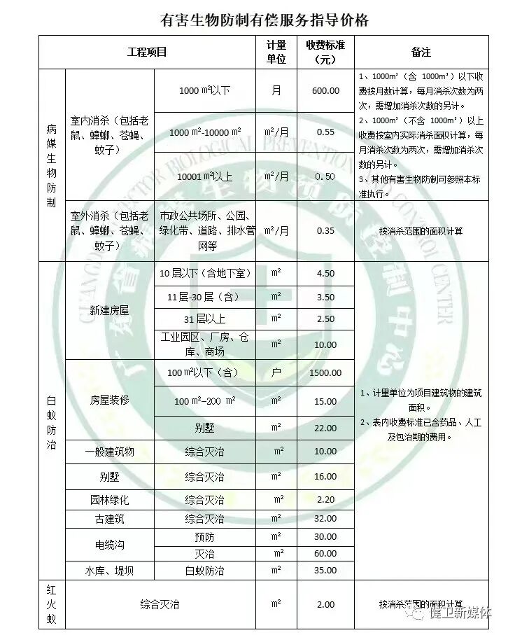 | 消杀公司收费标准 |
