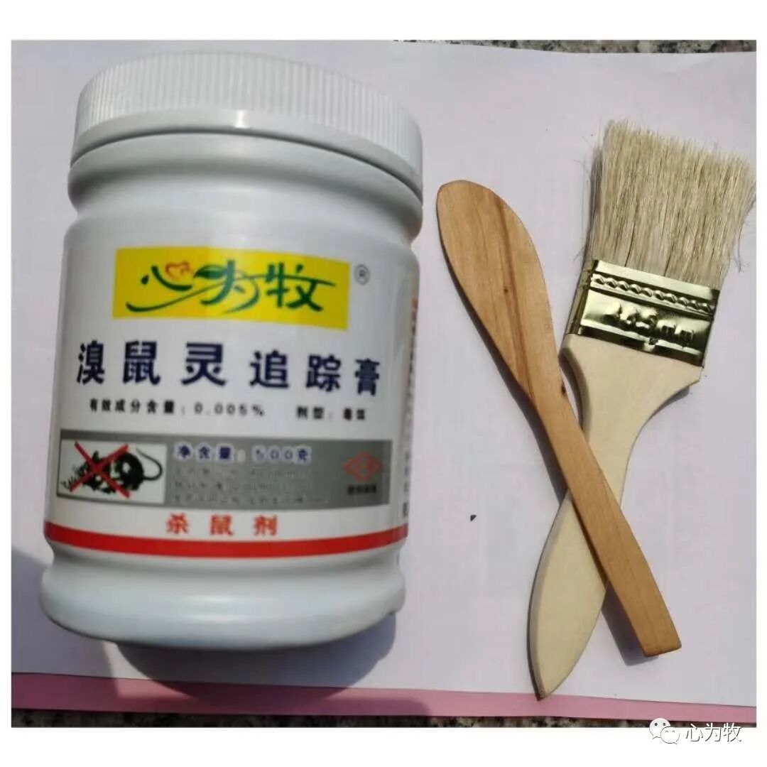 一款整窝端的老鼠药——老鼠追踪膏 成分;溴敌隆 产品概述 绝命膏是针对老鼠生活习性,由专业灭鼠人员经过多年反复试验研发成功的一款新型灭鼠饵剂。具有超强的引诱力、极佳的适口性,主要针对灭鼠失败剩下的老鼠,如:不吃药、不上板、任何机械都无法捕捉的老鼠,从根本上解决鼠害中的疑难问题。 产品特点 本品保湿期长,- -次涂抹可连续使用3-6个月,1-3天后可在明亮处和水源附近拾捡死老鼠,达到一窝端效果,畜禽误食已死鼠只均无二次伤害。 杀灭机理 施药后,当老鼠出来活动时会主动或被动的踏上药膏,药剂粘在老鼠爪子上、皮毛上,老鼠会主动舔舐清理,药剂会渗透四肢及皮下从而中毒死亡。本品含有干尸成分,老鼠死后快速脱水,避免老鼠发臭,污染环境。 使用方法 用毛刷涂刷在老鼠经常出没的地方,暖气管、上下水管道、电缆电线通道、鼠洞口及各种鼠道即可。 使用场所 本品适用于养殖场,厨房餐厅,食品厂,密封储藏室,仓库,工厂等。 注意事项 妥善保管,避免儿童接触。维生素K1为有效解毒剂。 |