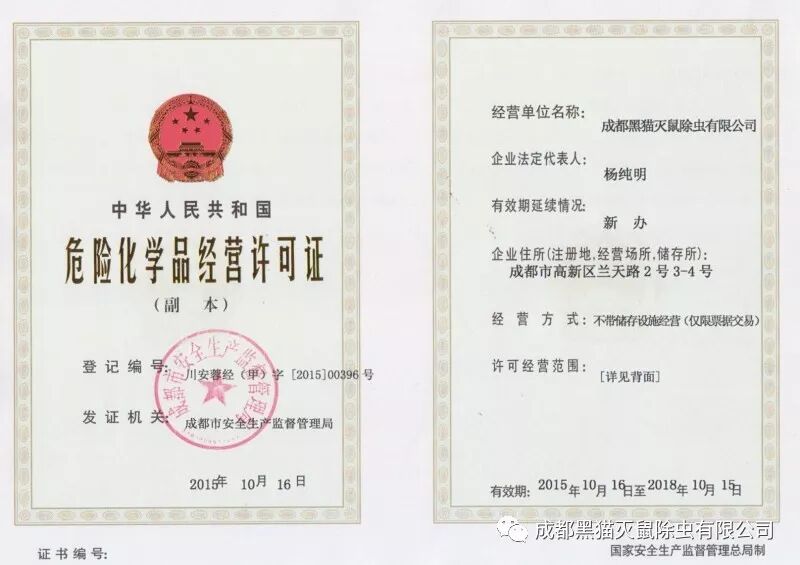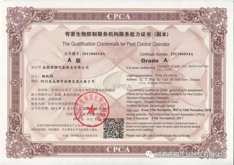 一、黑猫公司的责任、目标和追求 给客户提供一个没有鼠虫害骚扰的环境是我们的责任; 做行业领先、客户信任、社会认可的有害生物管理公司是我们的目标; 做一个对社会有担当、负责任的综合性病虫害防治公司是我们的追求。 总经理:杨纯明 二、黑猫公司的各类专业资格证书 全国A级资质证 个人职业资格证 AAA单位荣誉证 药品经营许可证 公司营业执照 管理体系认证 商标注册证书 客户的嘉奖 三、黑猫公司 简介 成都黑猫灭鼠除虫有限公司是集生产、经营灭鼠、杀虫药械及提供灭鼠、蟑、蚊、蝇、蚁、蚤、虱、螨蜱、白蚁等有害生物防制服务为一体的专业技术公司。中国有害生物防制协会会员,全国有害生物防制A级资质企业。 由于做出了一定的成绩,并积极参与抗震救灾等公益行动,中央电视台一套、十套、湖南卫视、成都电视台、四川电视台、华西都市报、成都商报、知音杂志等媒体对我公司做了数十次专题报道,并成为众多知名客户的合格供应商和合作伙伴,使公司在PCO行业占据了自己的一席之地。 1有一支专业的技术服务队伍 公司拥有一支经过专业培训、经验丰富、持证上岗的技术服务队伍。 公司配备统一“HM”编号的工程车辆 公司配备齐全的设施设备 2覆盖全省的学员网络 我们用十多年的实践,总结了一套本行业的完整管理体系,目前我们培训的学员队伍遍及四川省各地市州及其他省份。我们针对不同行业的工商业客户的具体情况,为其量身订制鼠虫害管理控制知识的培训,让客户掌握专业的知识,远离鼠害虫烦恼。 (学员培训会议现场) 3 提供鼠虫消杀、香芬、除臭、消毒、空气净化等服务 在做好有害生物防制的同时,我们对与鼠虫害服务相关的异味、甲醛、致病菌等方向也进行了拓展,在消除异味、环境香芬、空气净化、消毒等方面,进行了成功的尝试,取得了不错的社会效益。 (白蚁控制服务) (香芬工程服务) (室内消毒服务) (除臭除异味服务) (鼠虫害控制服务) 4、良好的社会信誉 黑猫公司在十多年的发展中,秉承诚信服务的理念,得到客户、行业、社会的认可,很多媒体都对我公司进行了专题报道。 (科技博览、湖南卫视、四川电视台、成都电视台对我公司才采访报道) (报刊杂志对我公司的专题报道) (我公司提供的公益服务) 5 严格规范的内部管理 黑猫公司岗位职责 在我工作时,都将努力做到遵守国家法律法规,遵守公司各项管理制度; 为了我自己、我的公司、我的行业和我服务的社会信誉,我将按公司及客户的管理制度严格要求自己; 在我工作时,我将全身心投入其中,认真服务于我们的客户; 我决不会在公开场合评判我的同行竞争中、我的客户、我的公司、我的同事的商业机密和个人隐私; 我将对我的公司忠诚并关注我公司感兴趣的领域; 我将努力充实我的有害生物防制知识,并使用这些知识更好地服务于我的客户; 我将努力在防治有害生物的同时,保护食物、健康、财产和环境。 黑猫客服部 黑猫接待室 牵手黑猫, 一起保护我们的环境! 黑猫药械库房 黑猫客户资料 |