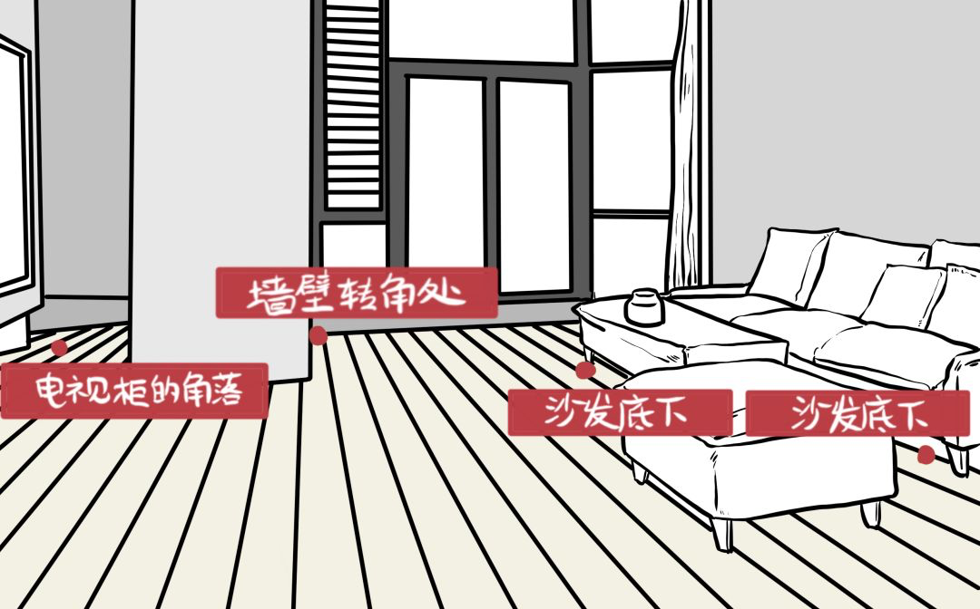 用的时候,可以把灭蟑胶饵点涂在蟑螂常出没的一些角落就可以,可以参考下面的示意图。